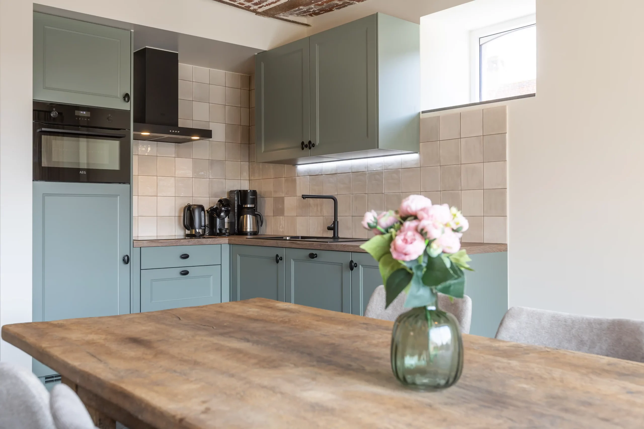 De gezellige leefruimte nodigt uit om te ontspannen. Met zachte zetels, een flatscreen-tv, snel wifi en veel natuurlijk licht voel je je er meteen thuis. Dankzij de airco blijft het ook tijdens warme zomerdagen heerlijk koel. Perfect voor een rustige avond of een gezellig samenzijn.