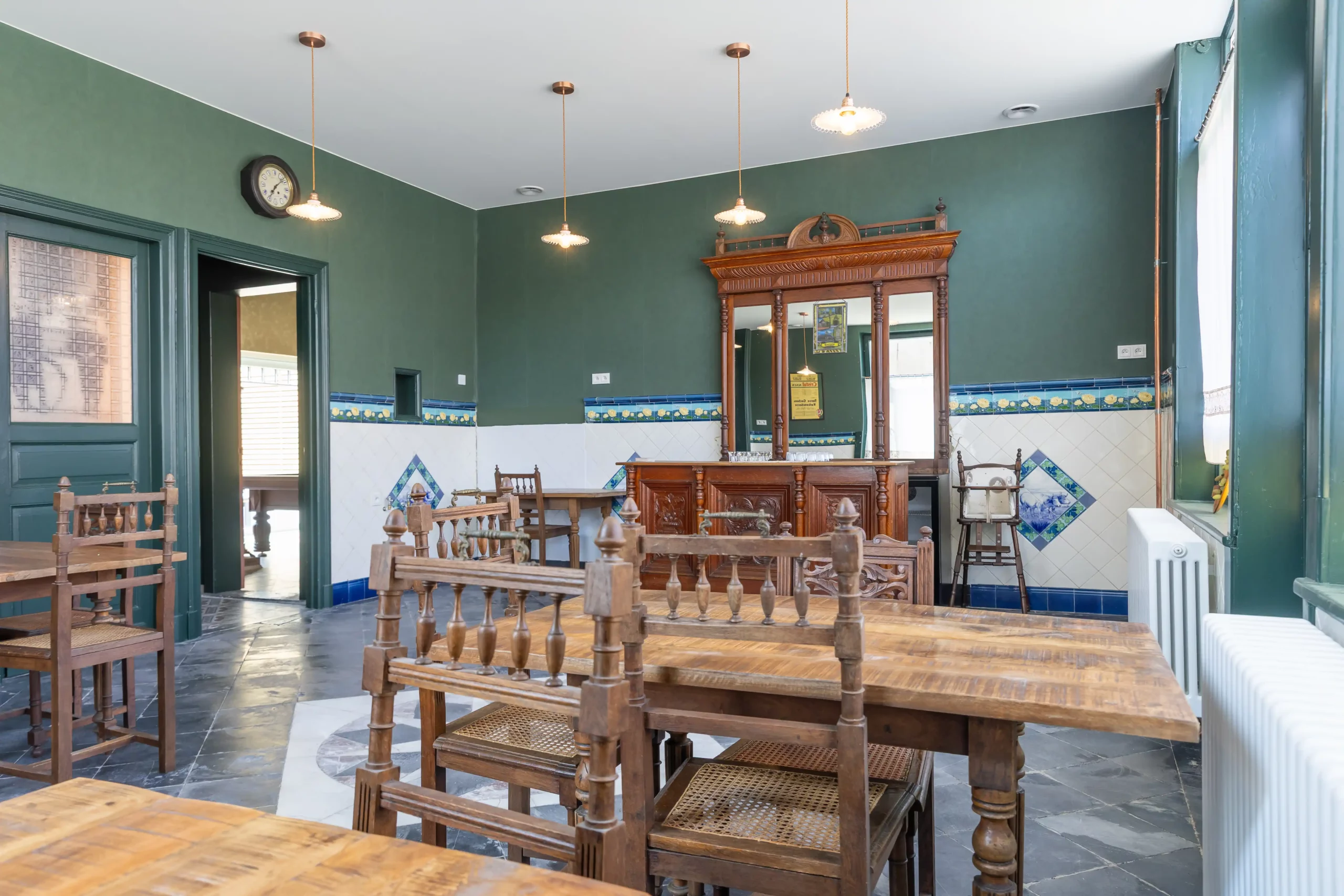 Het voormalige café ‘Au Voyageur’ is volledig in zijn oude stijl bewaard gebleven en omgevormd tot een gezellige ontmoetingsplek. Hier vind je een barretje met frigo, een biljarttafel en originele details zoals de historische windroos op de vloer. Een plek waar verhalen en gezelligheid samenkomen, net zoals vroeger.